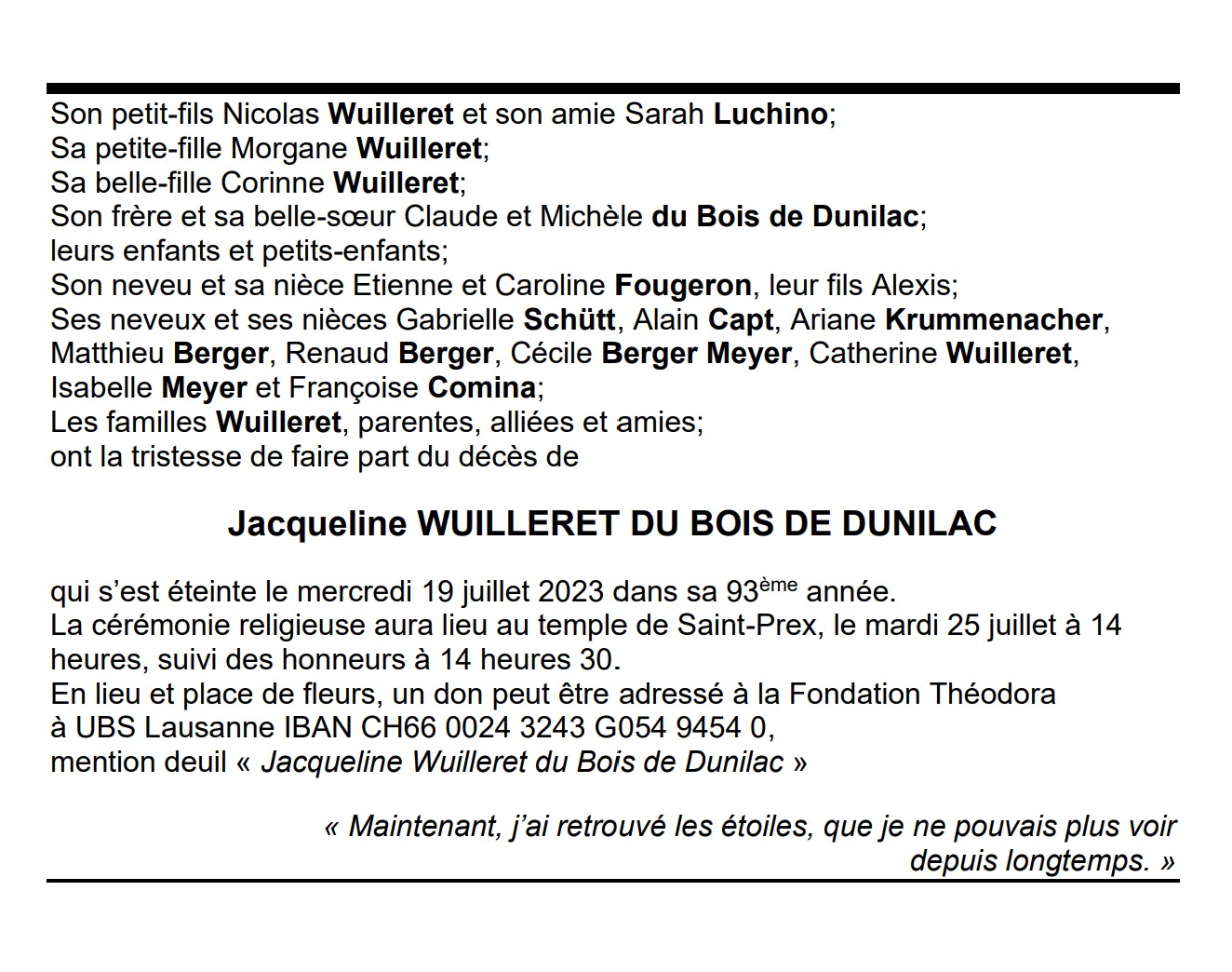 Jacqueline WUILLERET DU BOIS DE DUNILAC