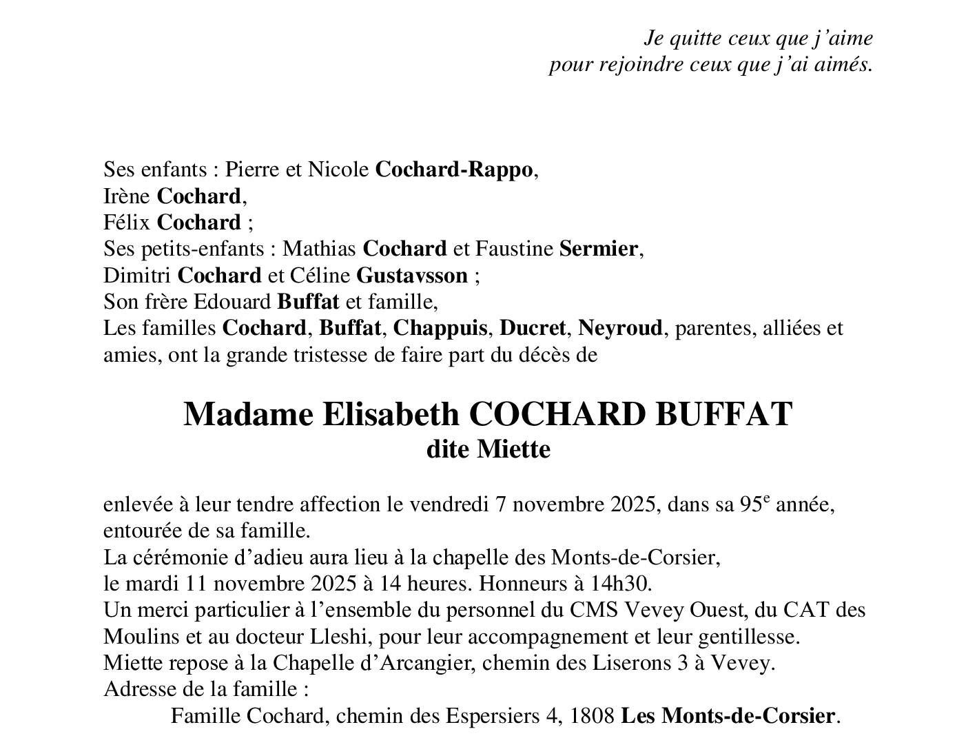 Madame Elisabeth COCHARD BUFFAT