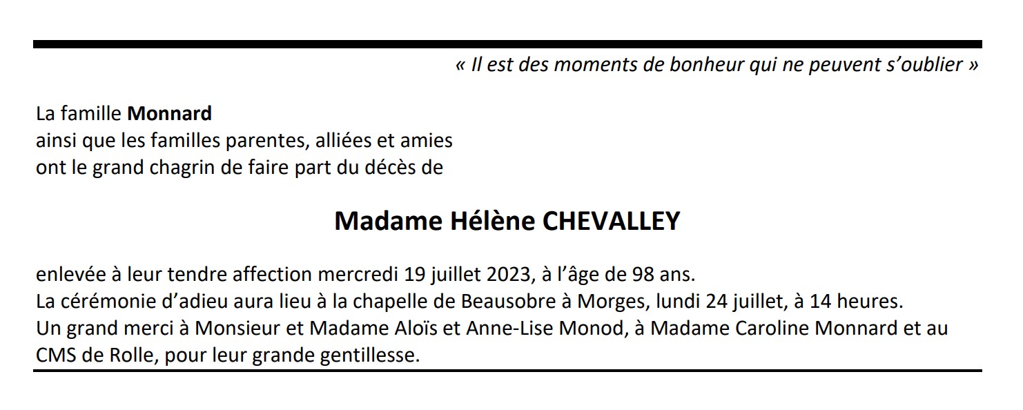 Embedded thumbnail for Madame Hélène CHEVALLEY > Galerie > Video or Image