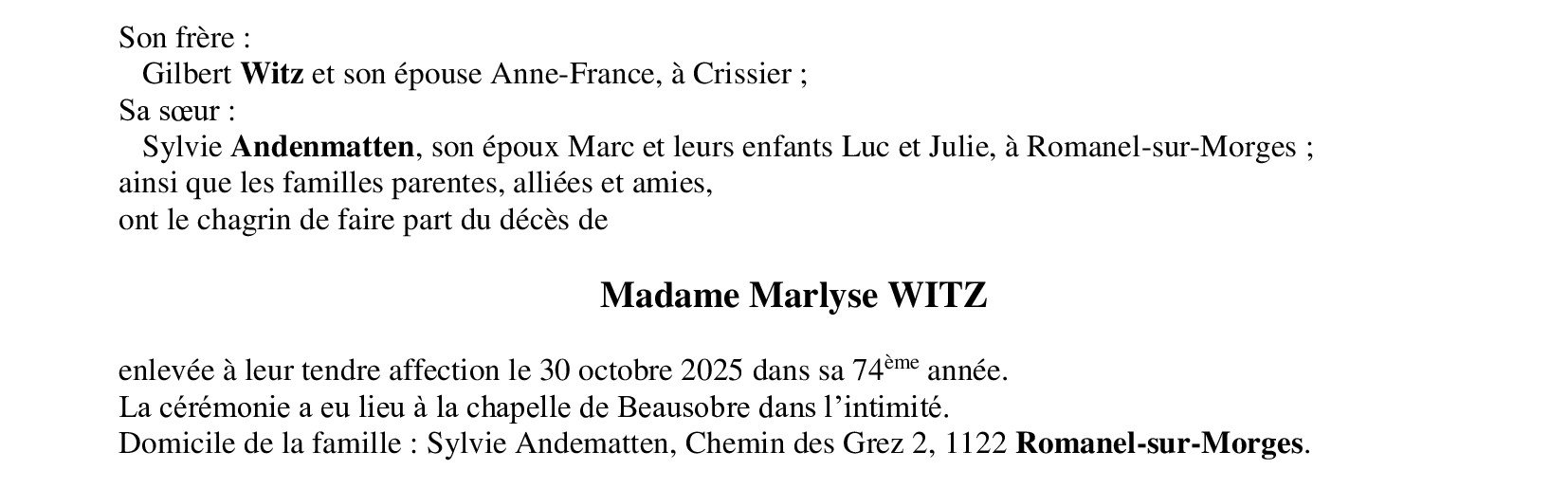 Madame Marlyse WITZ