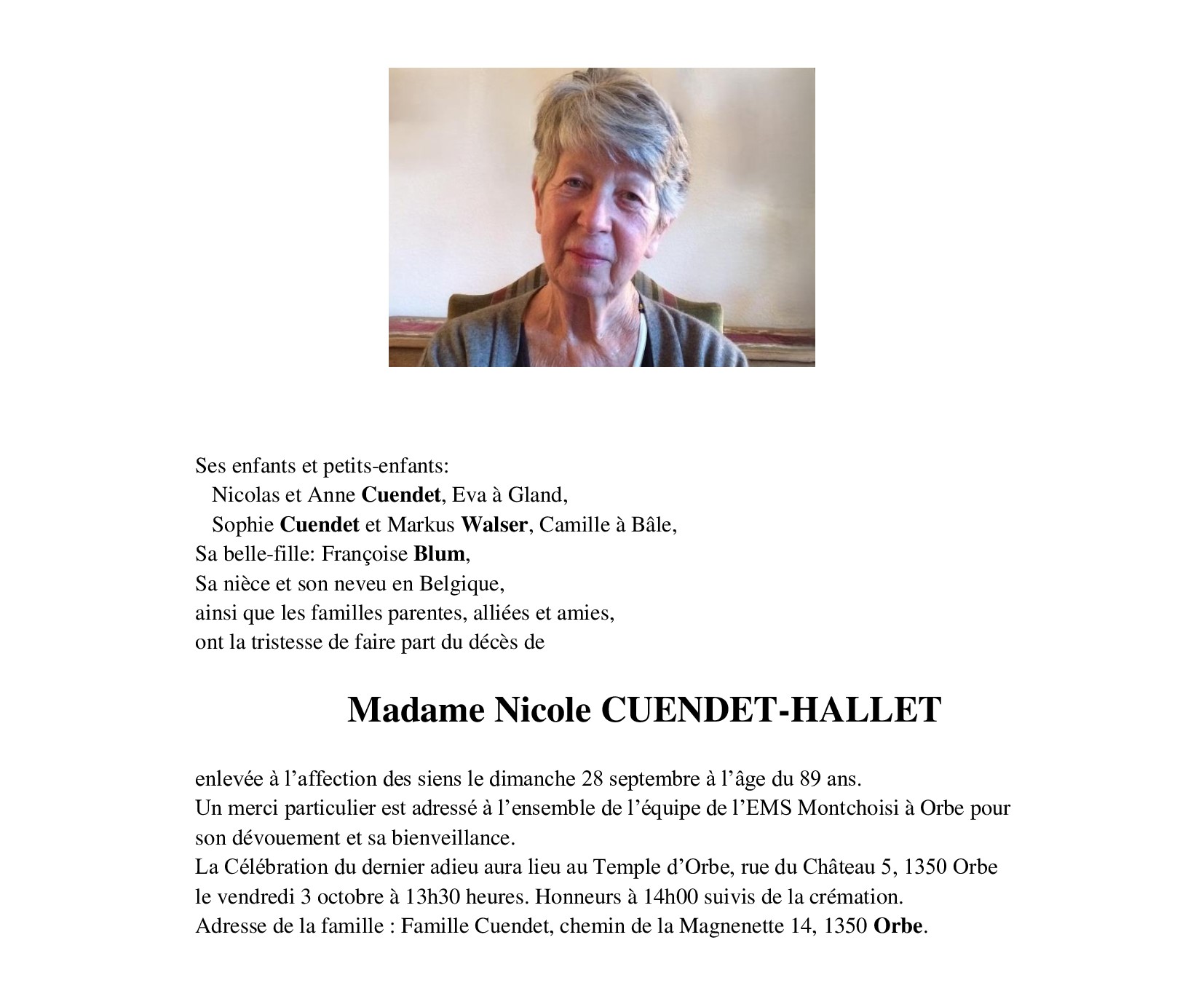 Madame Nicole CUENDET