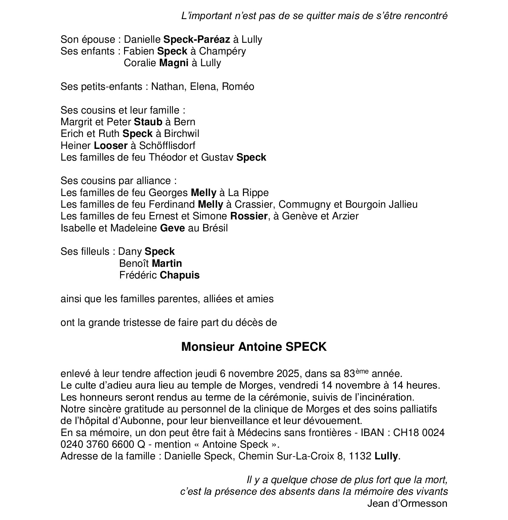 Monsieur Antoine SPECK