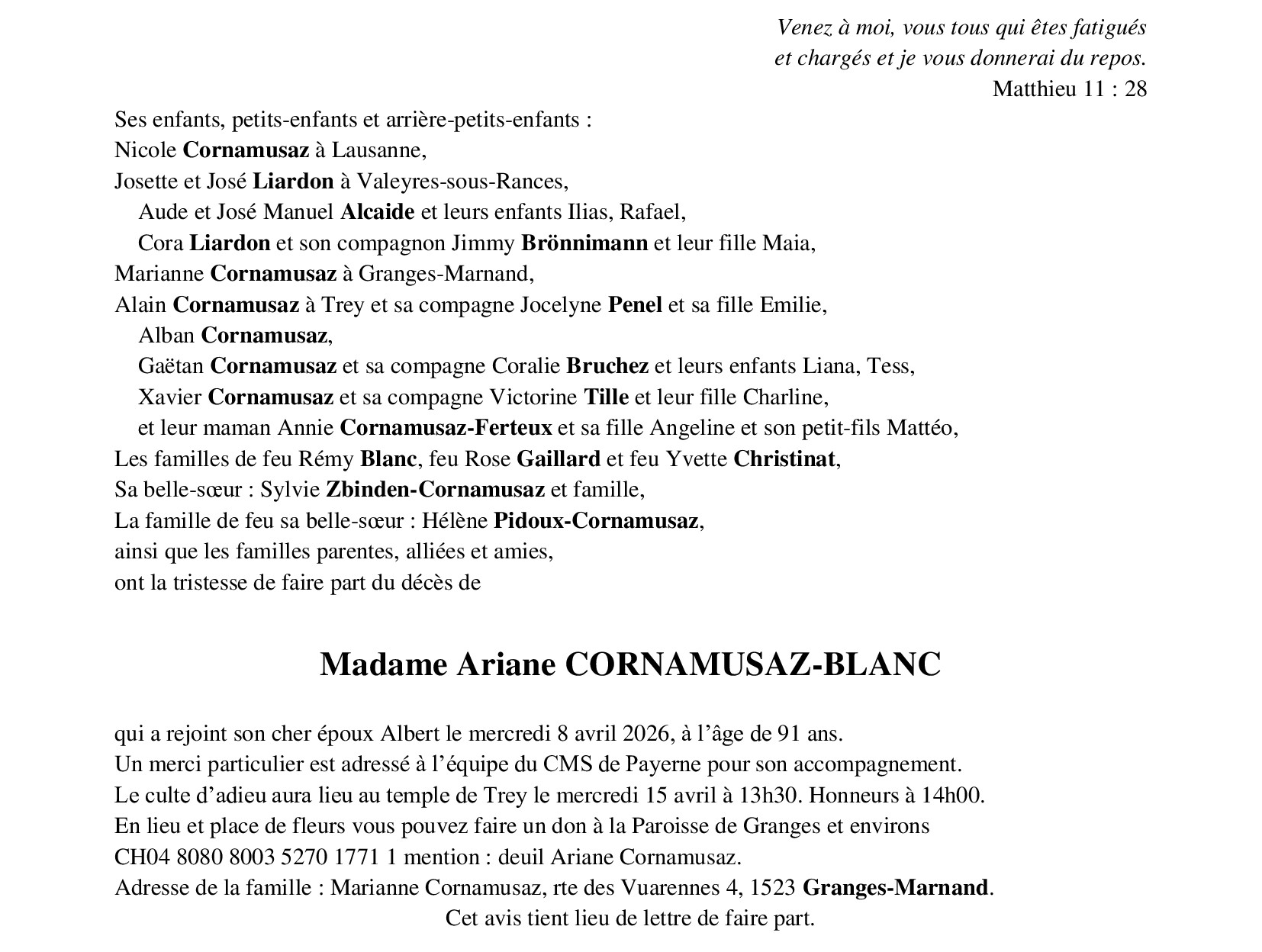 Madame Ariane CORNAMUSAZ-BLANC