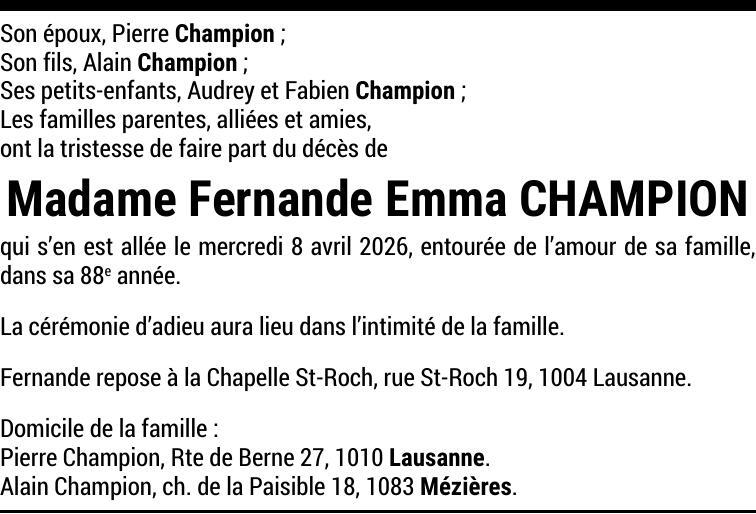 Madame Fernande Emma CHAMPION