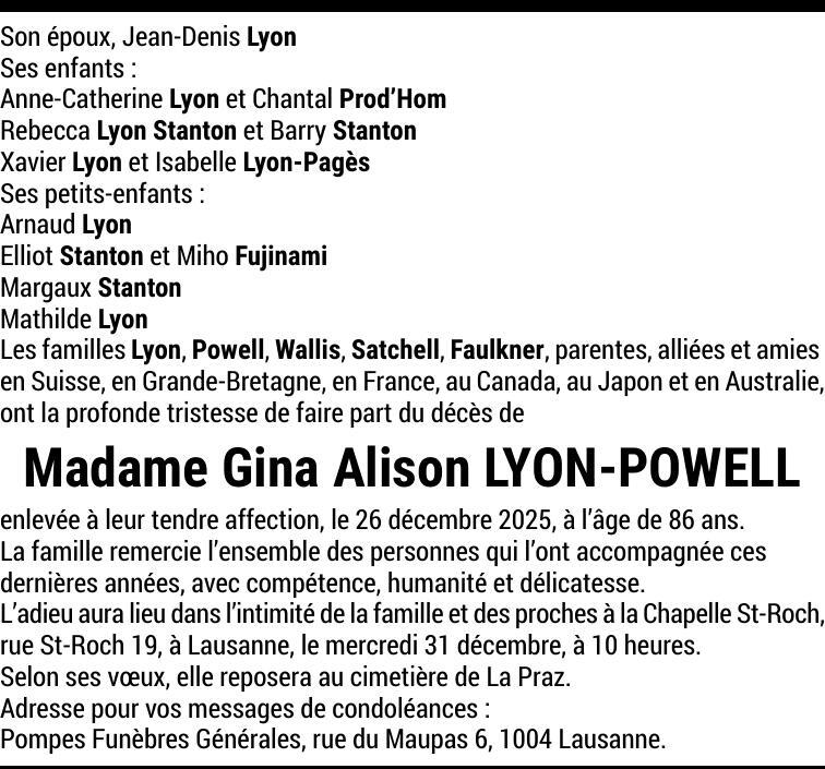Madame Gina Alison LYON-POWELL