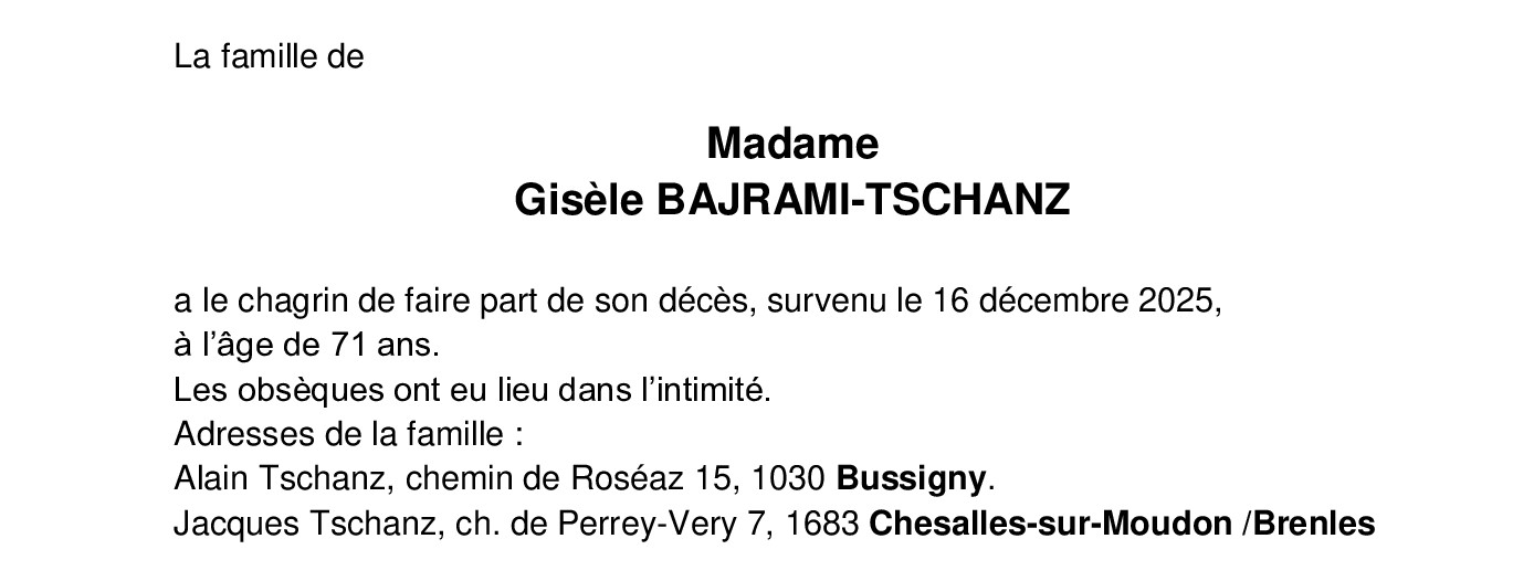 Madame Gisèle BAJRAMI-TSCHANZ