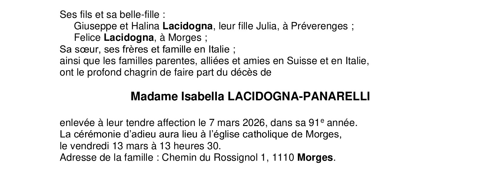 Madame Isabella LACIDOGNA