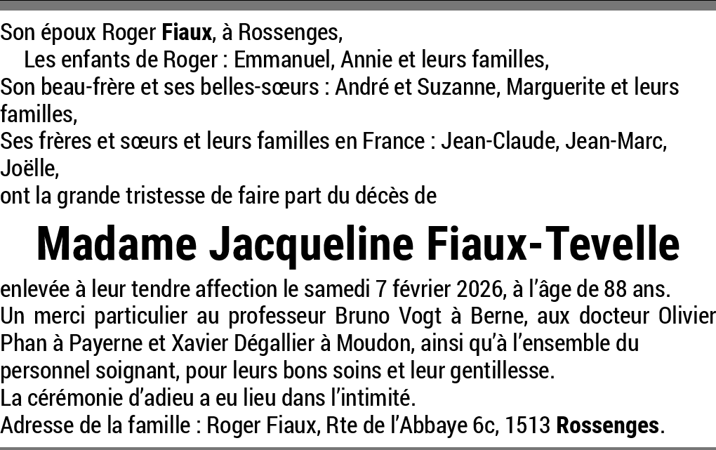 Madame Jacqueline FIAUX