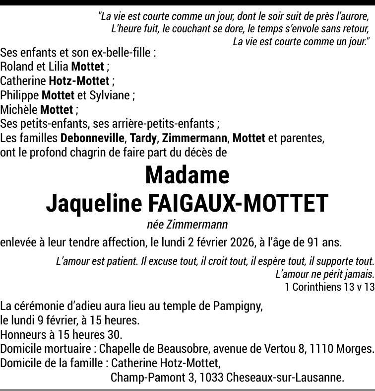 Madame Jaqueline FAIGAUX-ZIMMERMANN