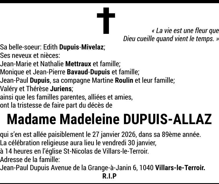 Madame Madeleine DUPUIS-ALLAZ