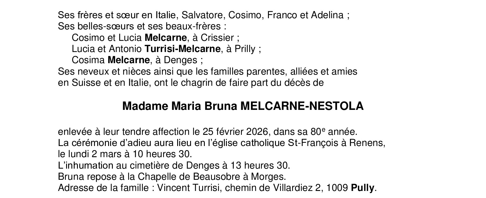 Madame Maria Bruna MELCARNE-NESTOLA