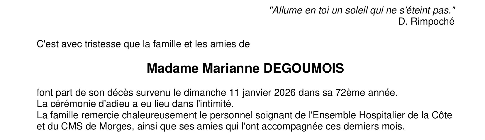 Madame Marianne DEGOUMOIS