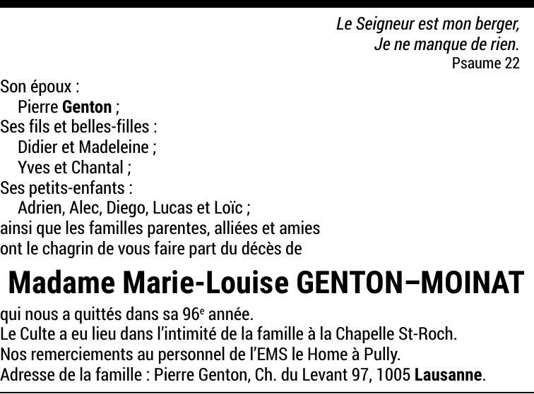 Madame Marie-Louise GENTON-MOINAT