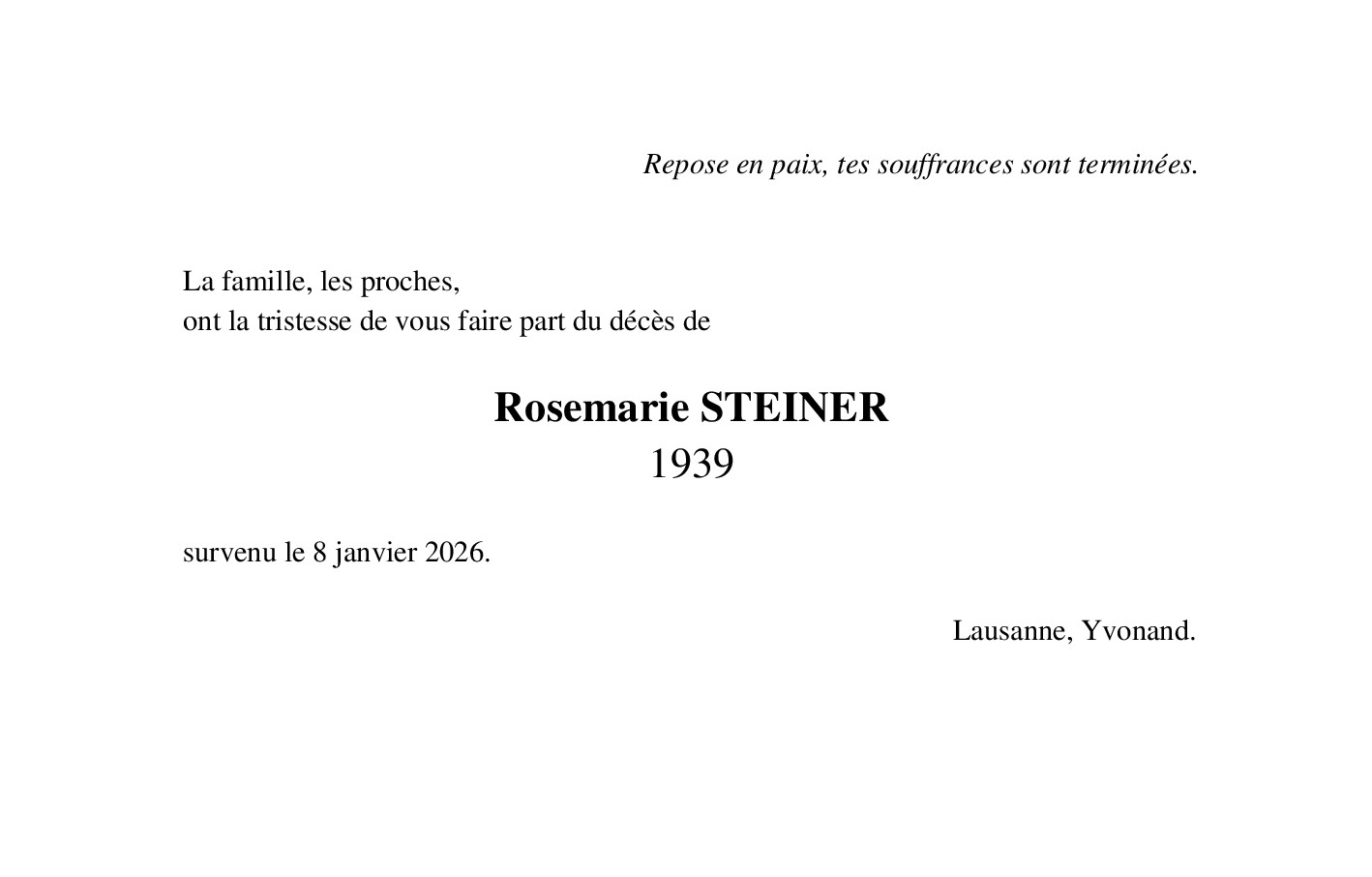 Madame Rosemarie STEINER