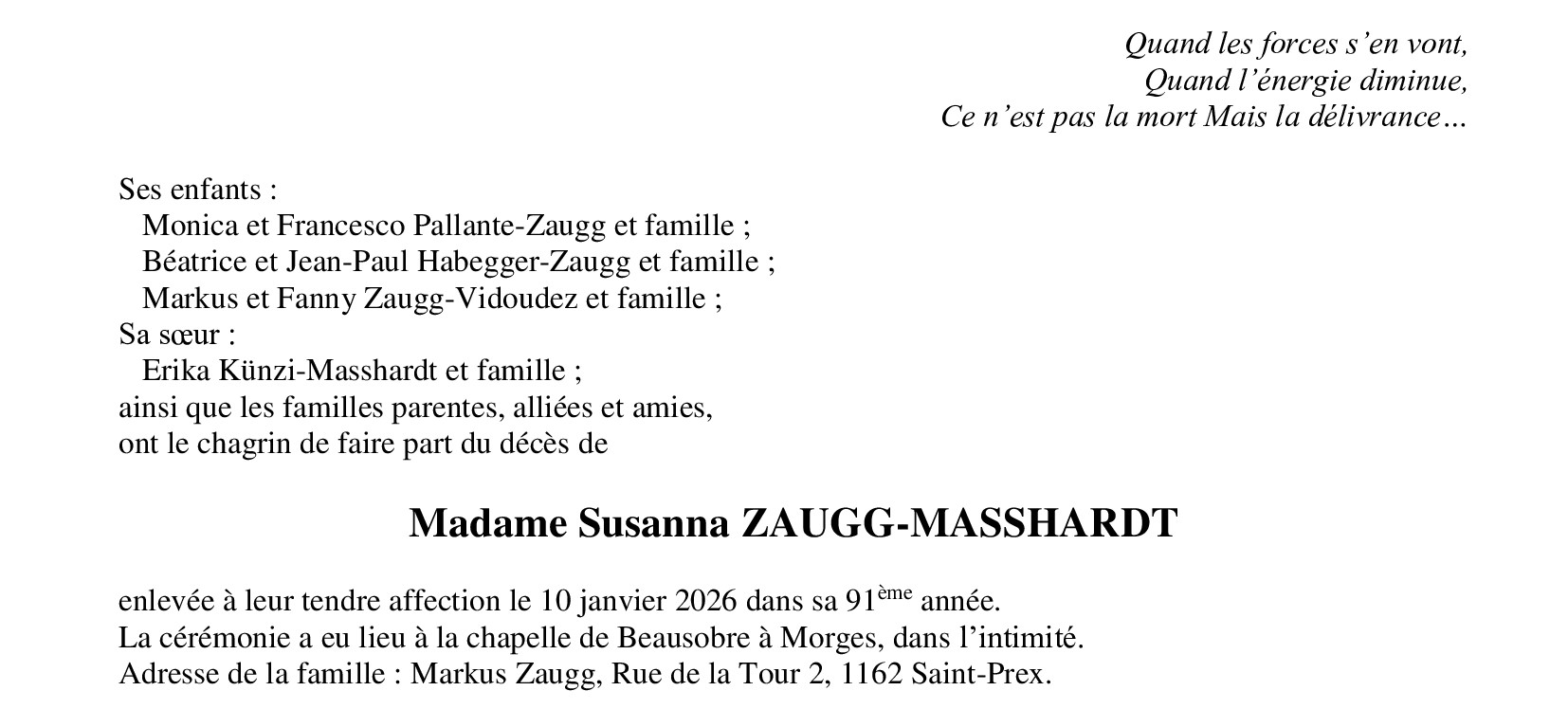 Madame Susanna ZAUGG