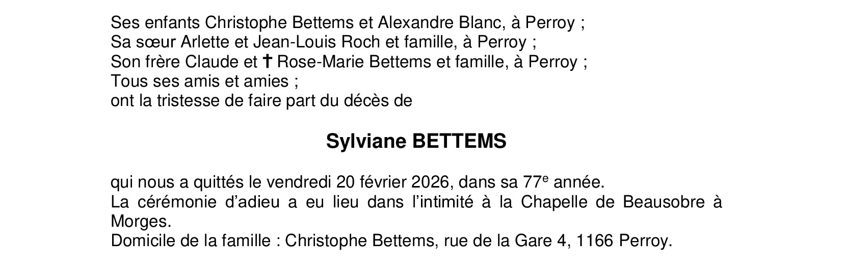 Madame Sylviane BETTEMS