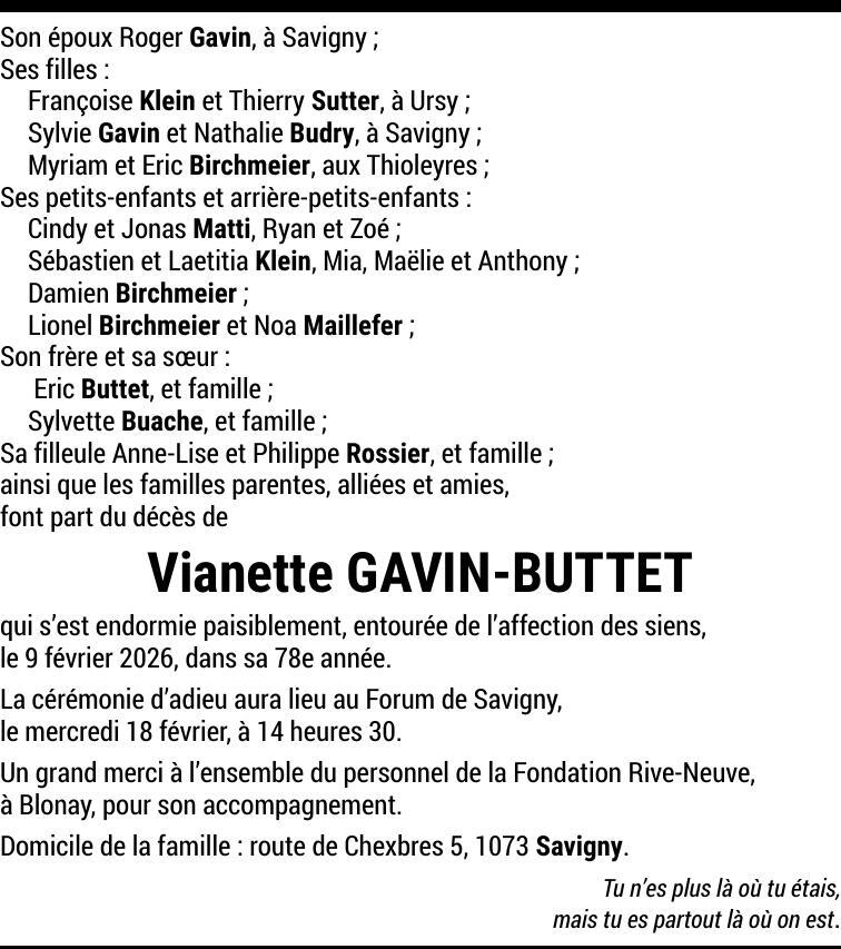 Madame Vianette GAVIN-BUTTET