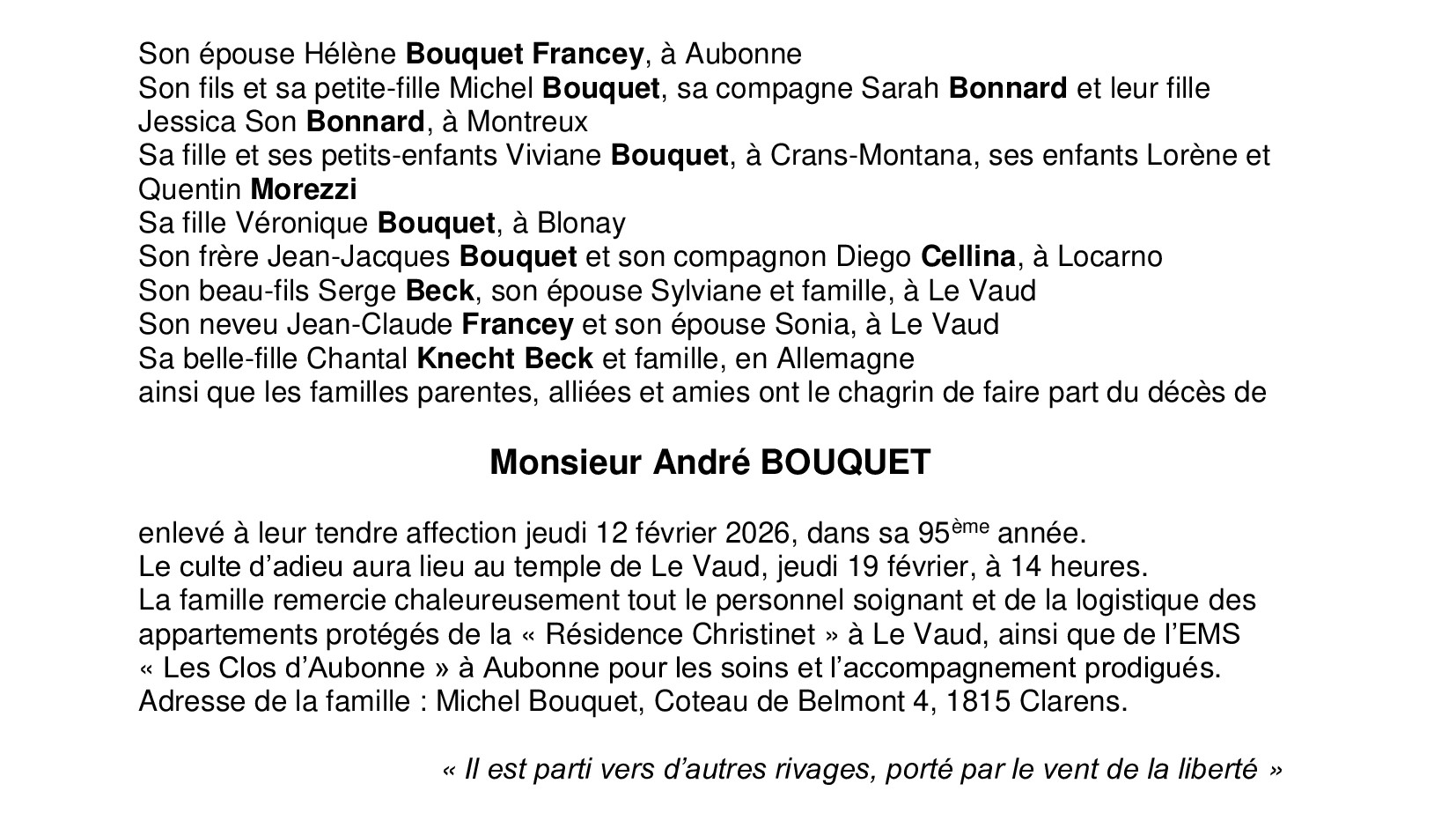Monsieur André BOUQUET