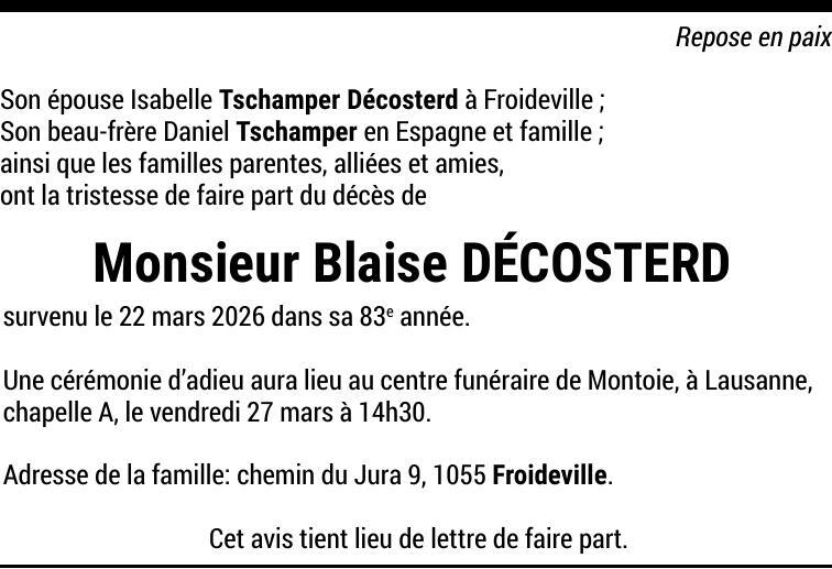 Monsieur Blaise DÉCOSTERD