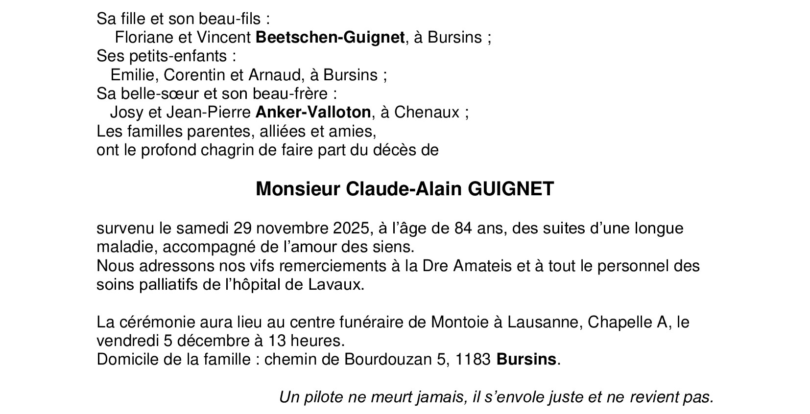 Avis mortuaire PFG