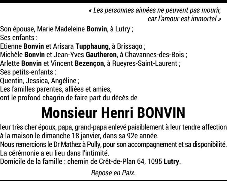 Monsieur Henri BONVIN