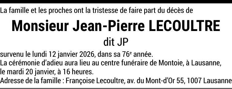 Monsieur Jean-Pierre LECOULTRE