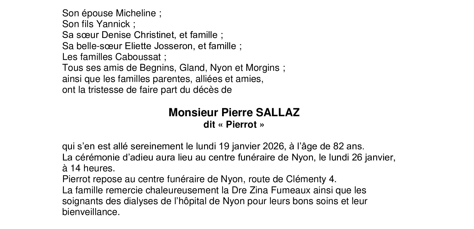 Monsieur Pierre SALLAZ