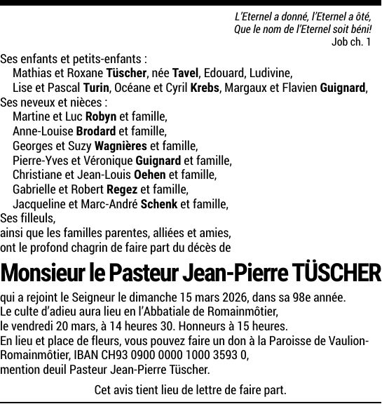 Pasteur Jean-Pierre TÜSCHER